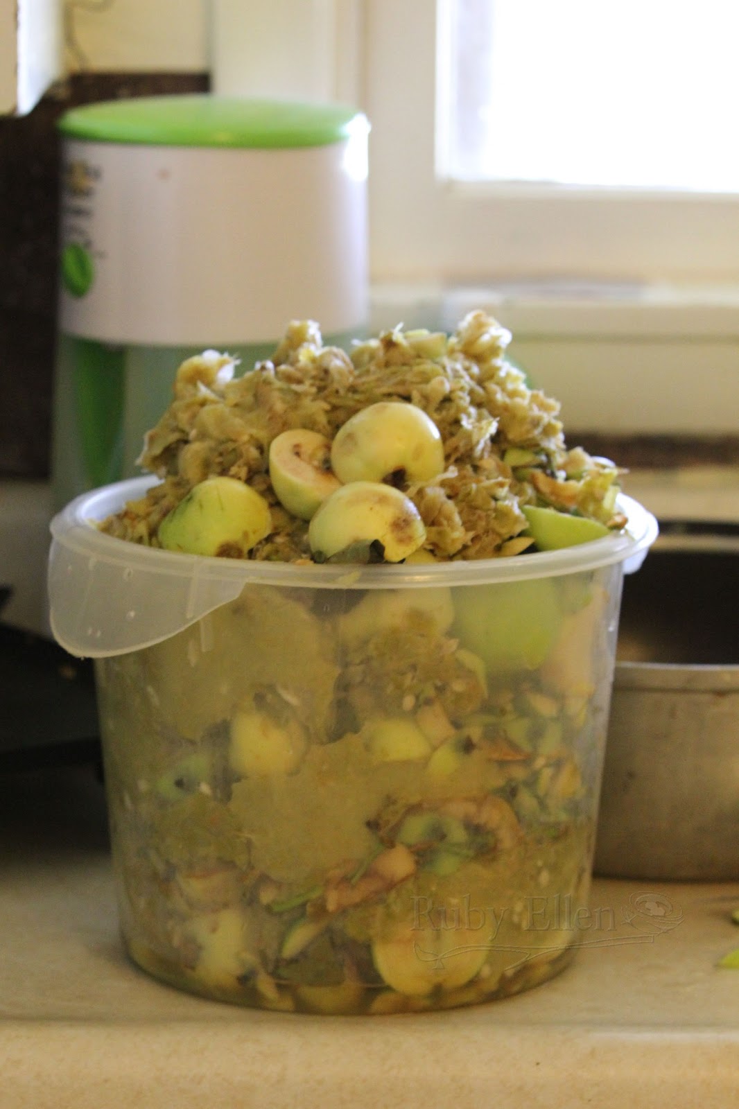 Even the "waste" is pretty to look at with the shades of green and brown and red. This also makes great compost for the garden!