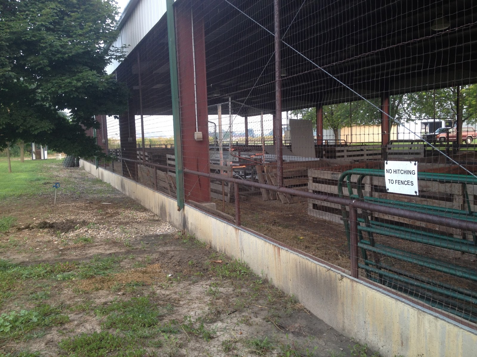 On my most recent trip to Odon, Indiana for the Horse Progress Days, I spent two nights camping in this parking lot. You can see campers in the background behind the buggies. The buggies are parked outside of a Recreation Center. I spent about an hour on both evenings inside of the Rec. center re-charging my phone. The drivers of the buggies were Amish young people, who were inside playing basketball and volleyball. I thoroughly enjoyed hanging out listening to them laugh and play. When they passed by my perch, near an outlet charging my phone, they all spoke friendly words to me. When I retired to my pickup-topper to sleep for the night, I dozed off to the sound of horses clip-clopping on a road nearby. I woke to the sound of Amish young people talking as they rode horseback directing traffic in the parking lot. It was 6 am and a group of Amish young people (male and female) sat on their horses in the fog, showing incoming vans and cars where to park.