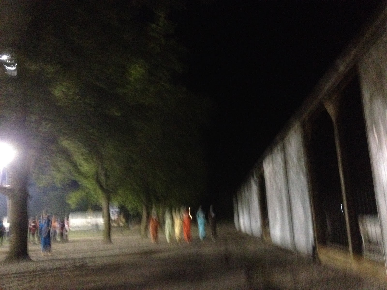 | view from my pickup bed. it's too dark to see the buggies or small groups of Amish teens here and there |