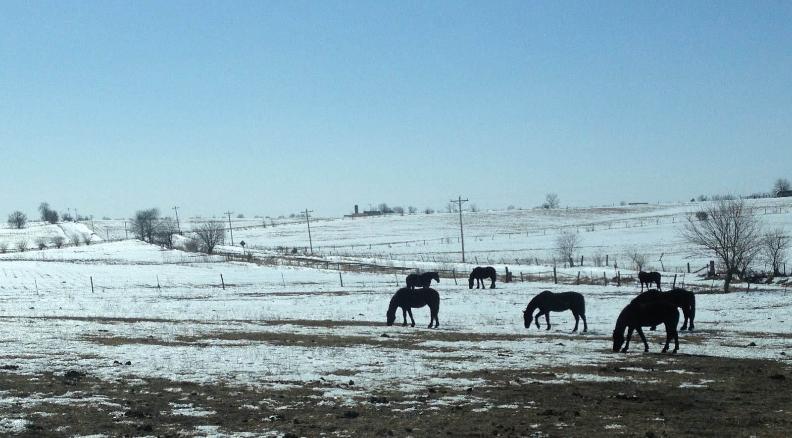 I don't know how much these horses are able to find under that snow but they never give up looking for something to nibble on. I know this Amish farmer provides hay for his horses, but when horses have their fill of hay they like to look for an extra treat.