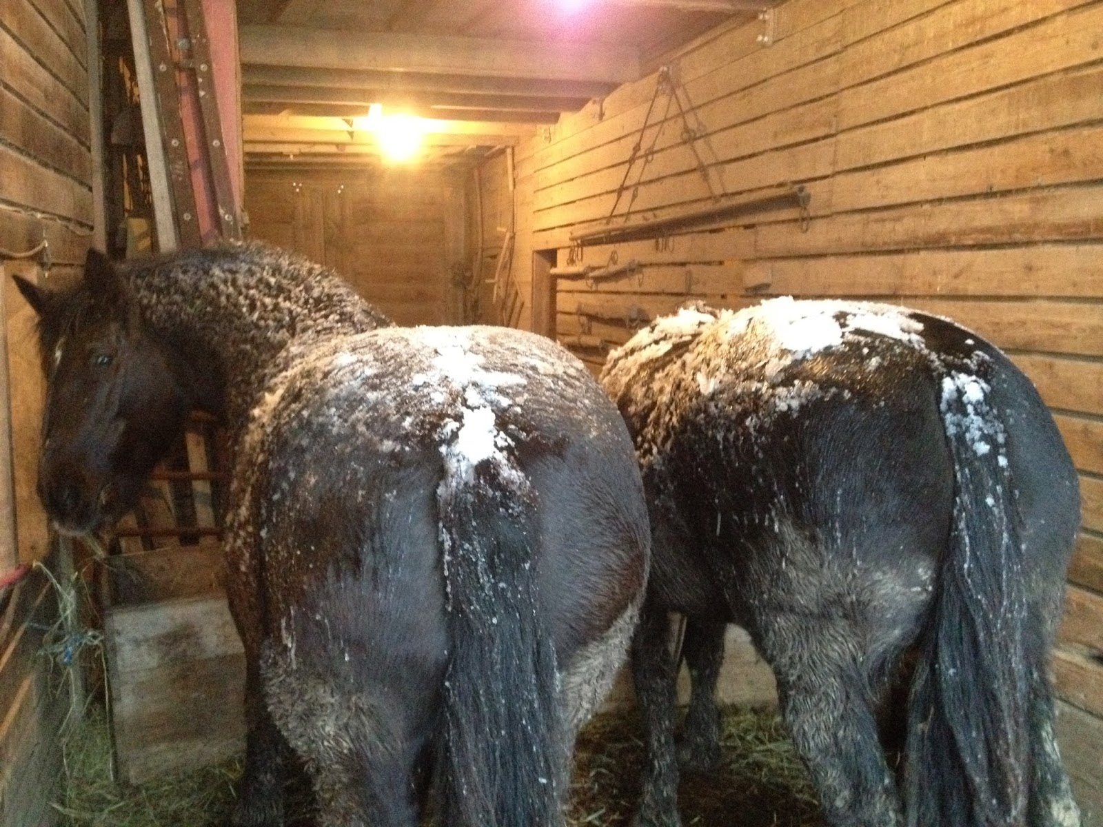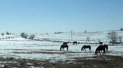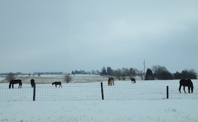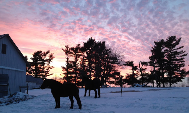 As I've said before, horses are as tough as buffalo and prefer to stay out in the weather unless there are subzero temps and wind. It was snowing the other day and my own horses (pictured above) didn't come inside until I called them in and fed them hay. The doorway (I'm standing in to take this pic) is always open and they have two sides of a barn they can enter at will.