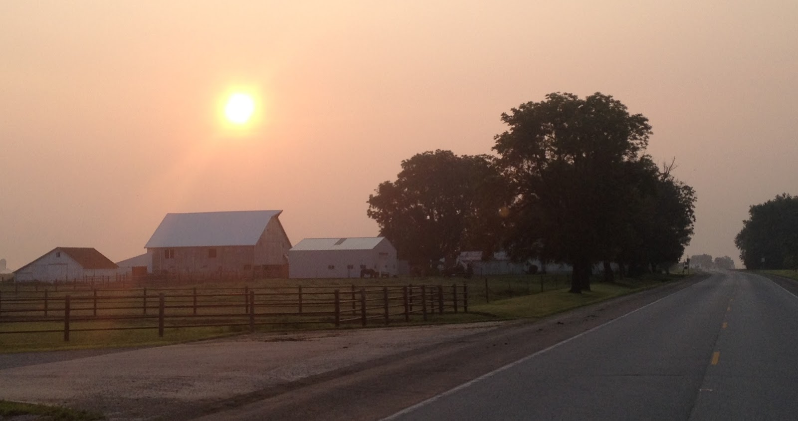 A buggy horse clip-clops with a nice sharp sound on the pavement. Where would an Amish family head this early in the morning? Maybe they are on their way to Grandma's farm to help can tomato sauce or make homemade ketchup.