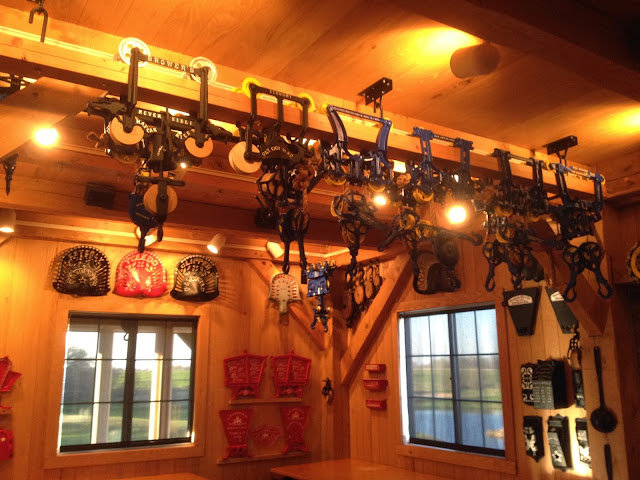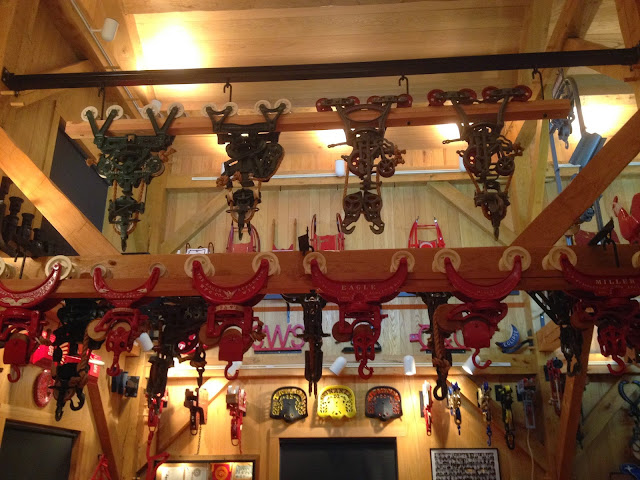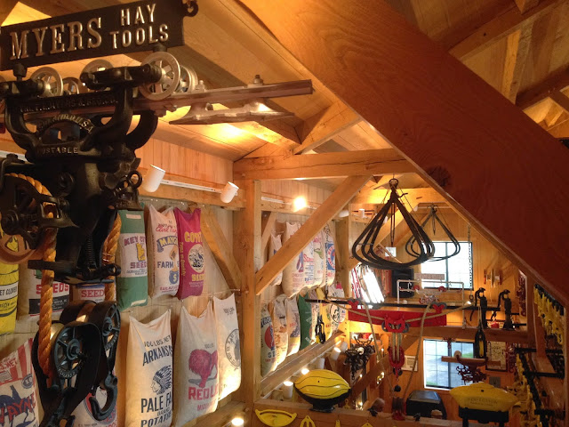We have a local resident that collects hay trolleys from all over the country. The Kalona Mennonite Historical Society held a meeting in this display barn a few weeks ago. I asked for permission to take some pictures and blog about it.