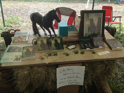 I sold copies of my Amish novels at this booth. If you notice, the sign says, "City boy spends a summer on an Amish farm, he learns to farm with draft horses." My goal was to give folks a quick burb that would let them know what my books were about. I was surprised and pleased at how well I was received, though I was a minority (non-Amish) at this event, for sure!