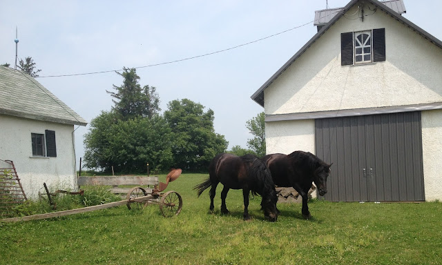 Everyone has an ideal horse in their heart, mine happens to be a coal-black Percheron. On the weekend of July 4th, I attended Horse Progress Days in southern Indiana. This eight-horse hitch came prancing out and my heart about stopped. As you can see from the photo... that little Amish boy on the other side of the road had the same reaction I did!