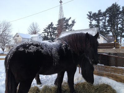 Last Monday we had a big ice storm here in Iowa. I had a tax appointment in Kalona and braved the bad conditions to get to town. I drove slowly down an ice-covered road in my big four-wheel-drive truck. As I drew close to my Amish neighbor's place, I saw their young sons heading out of their lane in an open cart, on their way to school. (I would have taken a picture but I needed both of my white-knuckle-hands on the wheel) Their horse was trotting at full speed. Amish have a special horseshoe they put on their horses in the winter with carbide pieces. Those horses can literally run on ice without slipping.