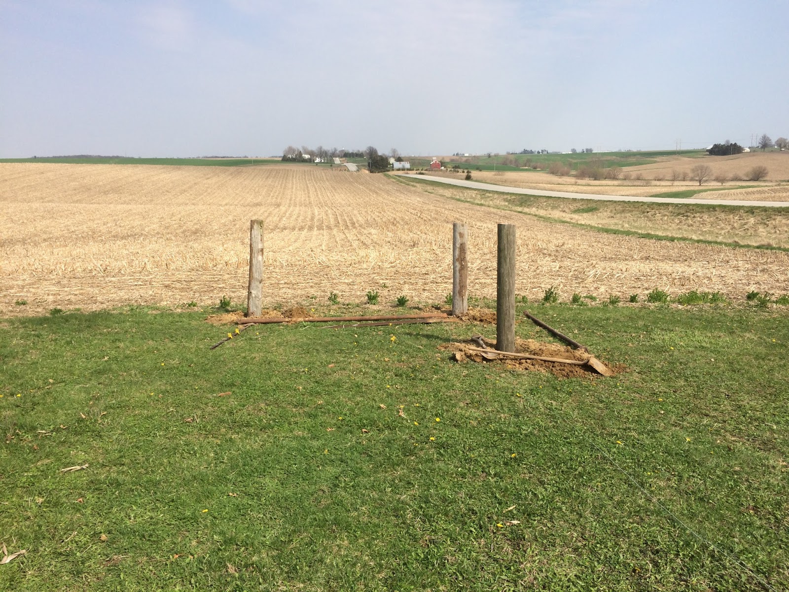 In the photo below, you can see my old electric fence, Karla grazing, my pickup truck, and the post-hole-digger.