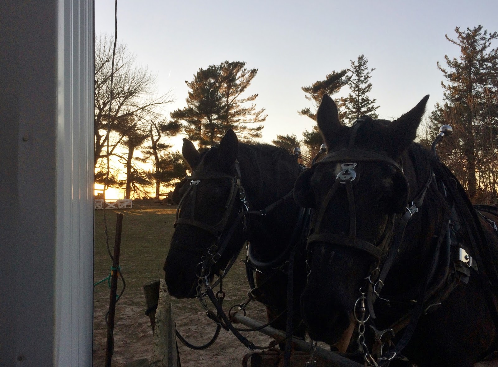 Coke is such a social creature and seems way happier at the Amish farm with a crowd of buggy horses around her. I asked my Amish friend if Coke raised a fit when she realized that Karm was gone. He said, "Not at all. But when I hitch the team and take them to the field, Coke and one of the buggy horses call back and forth to each other." She has a new best friend.